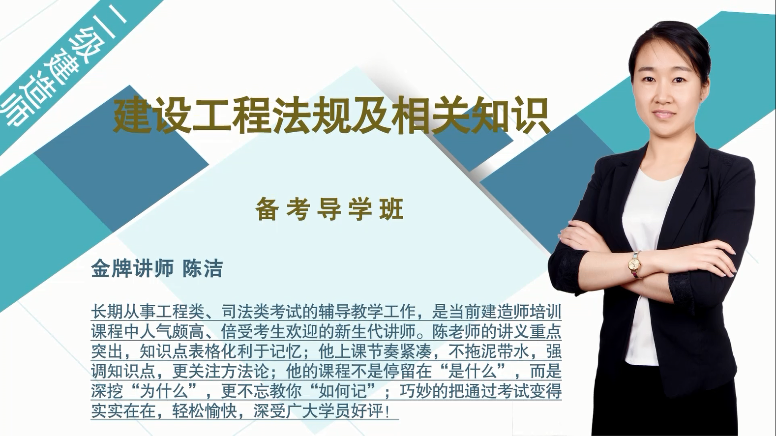 金牌講師陳潔,長期從事工程類、司法類考試的輔導教學工作,是當前建造師培訓課程中人氣頗高、倍受考生歡迎的新生代講師。陳老師的講義重點突出,知識點表格化利于記憶他上課節奏緊湊,不拖泥帶水,強調知識點,更關注方法論。他的課程不是停留在“是什么”,而是深挖“為什么”,更不忘教你“如何記”:巧妙的把通過考試變得實實在在,輕松愉快,深受廣大學員好評!